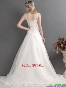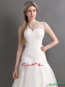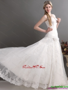 2015 Perfect A Line Wedding Dress with Lace and Hand Made Flowers
