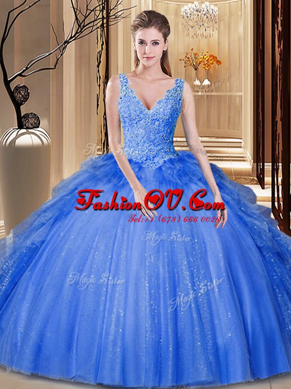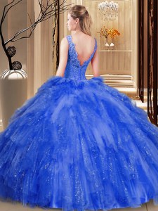 Admirable Royal Blue Sleeveless Floor Length Sequins and Pick Ups Backless 15 Quinceanera Dress