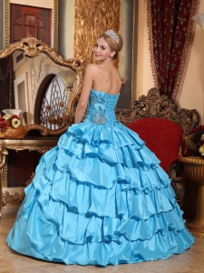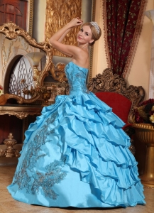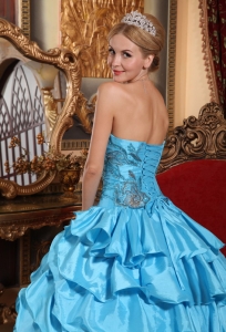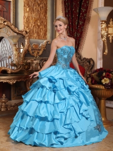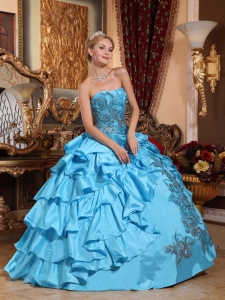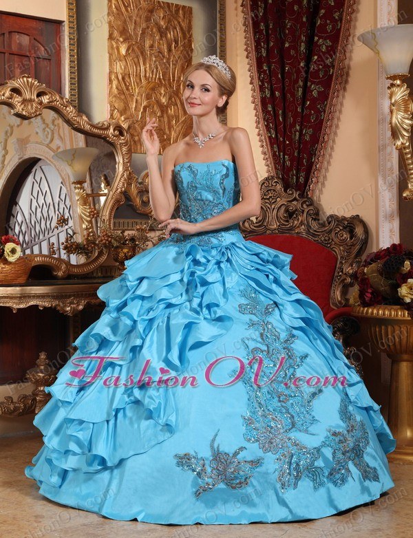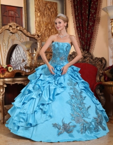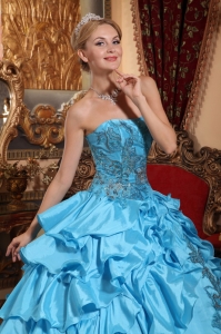 Aqua Blue Ball Gown Strapless Taffeta Appliques Quinceanera Dress