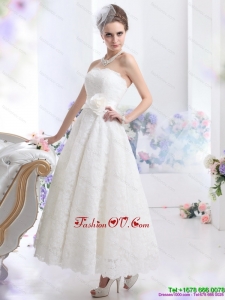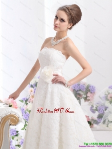 Brand New Strapless Ankle-length Wedding Dress with Hand Made Flowers