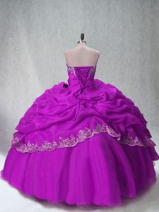 Custom Designed Ball Gowns Vestidos de Quinceanera Fuchsia Sweetheart Organza Sleeveless Floor Length Lace Up