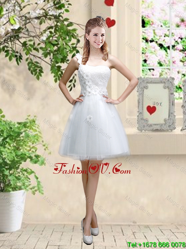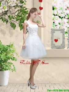 Discount One Shoulder Appliques Prom Dresses in White