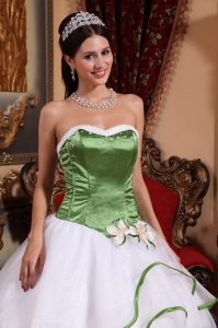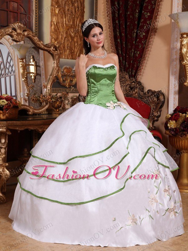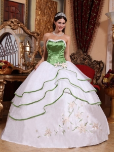 Embroidery Ball Gown Quinceanera Dress Olive Green and White