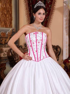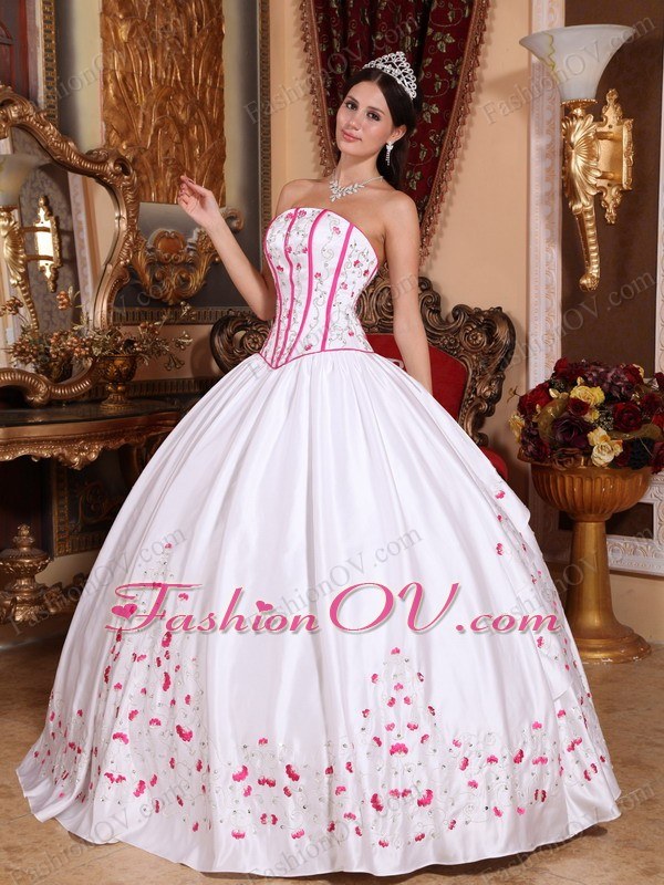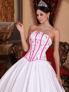 Embroidery Pink and White Quinceanera Ball Gowns Beading