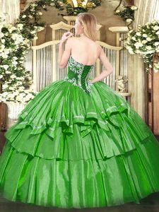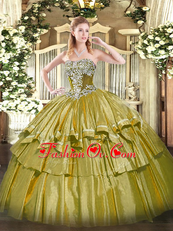 Fancy Floor Length Ball Gowns Sleeveless Olive Green 15 Quinceanera Dress Lace Up