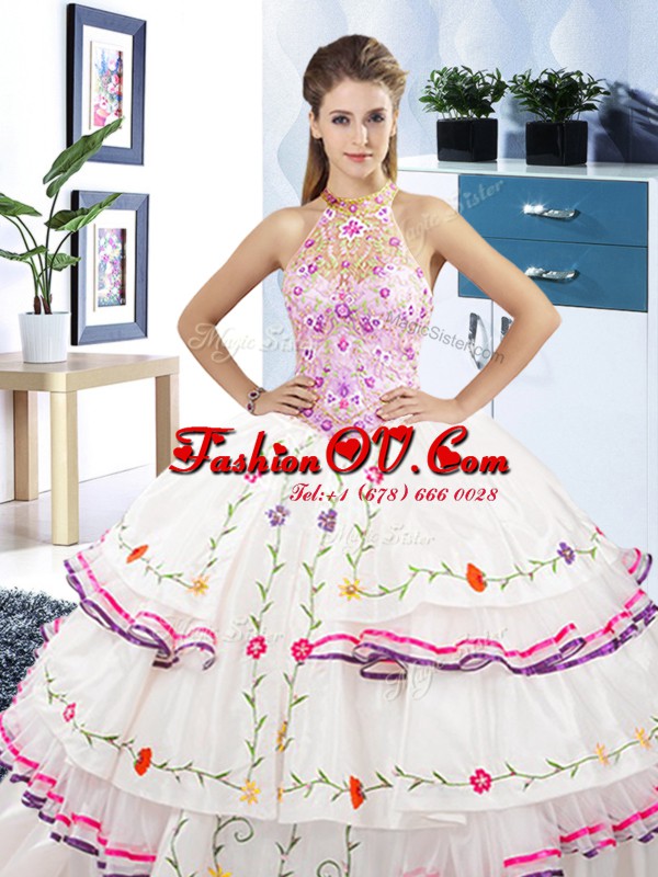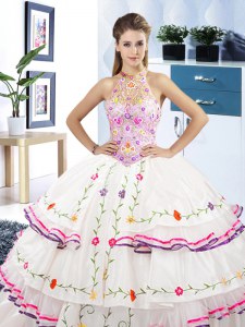 Fantastic Halter Top Sleeveless Embroidery and Ruffled Layers Lace Up Sweet 16 Dresses