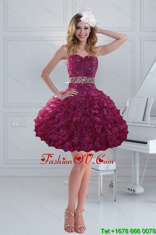 Fashionable Beaded Strapless Ruffled Prom Dresses for 2015