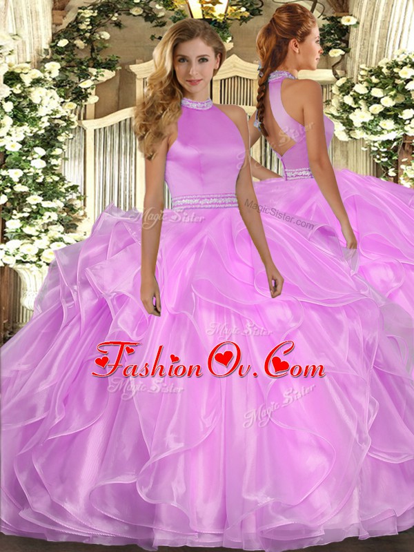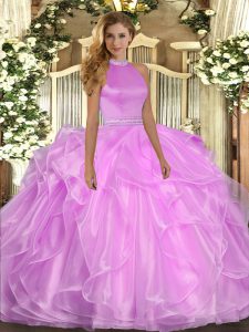 Flirting Lilac Halter Top Backless Beading and Ruffles 15 Quinceanera Dress Sleeveless