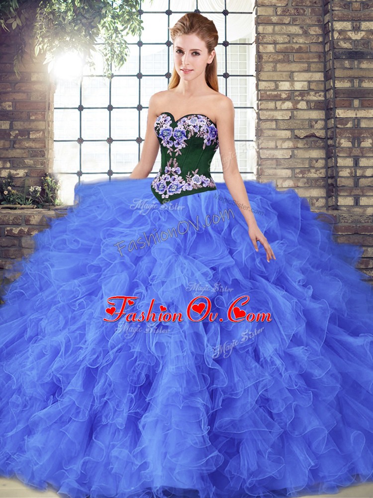 Floor Length Blue Quinceanera Gown Sweetheart Sleeveless Lace Up