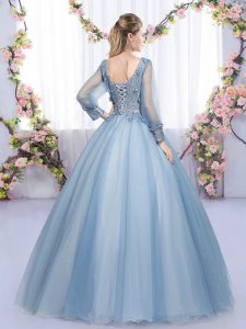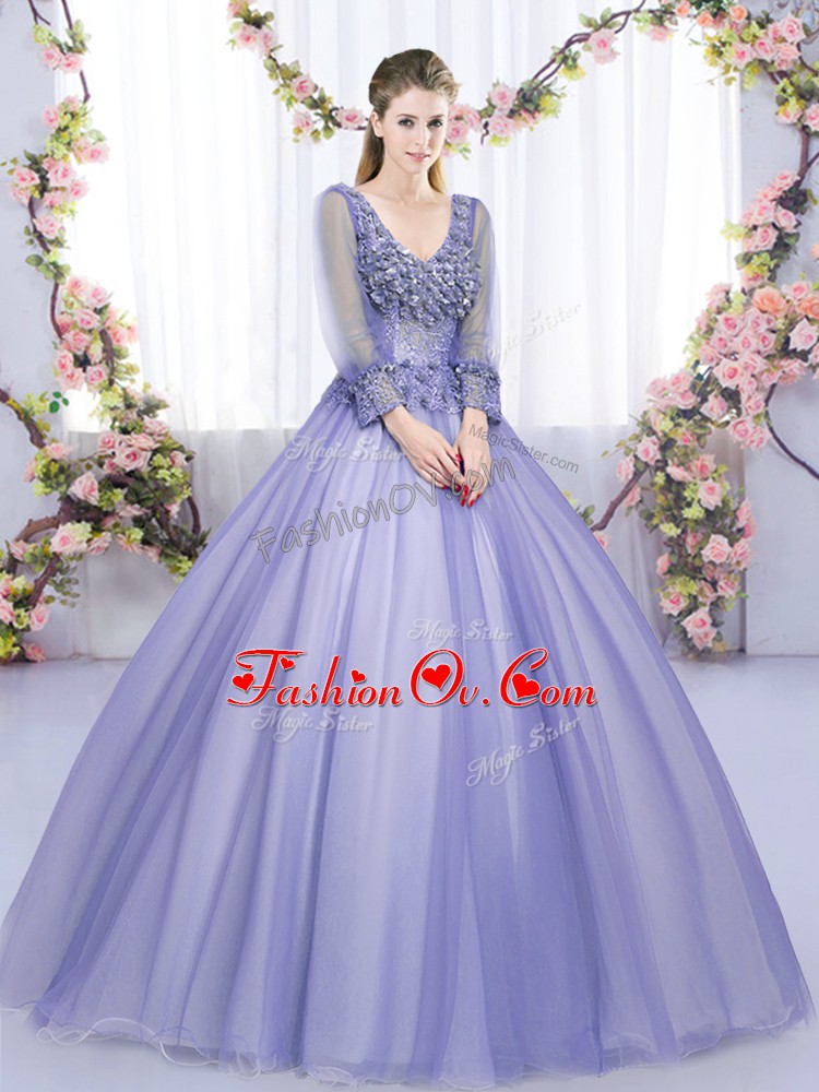 Floor Length Lavender Sweet 16 Dresses V-neck Long Sleeves Lace Up