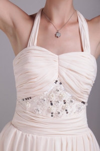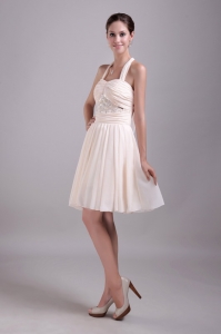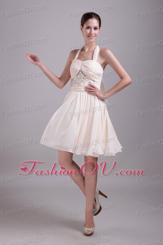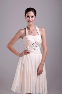 Halter Knee-length Beading Light Pink Cocktail Dresses