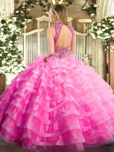 High-neck Sleeveless Backless Quinceanera Gown Lilac Tulle