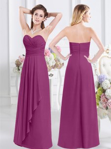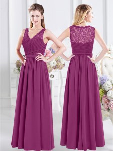 Hot Selling Lace and Ruching Wedding Party Dress Fuchsia Side Zipper Sleeveless Floor Length
