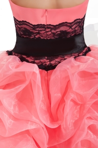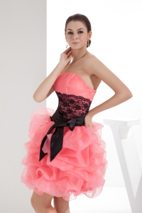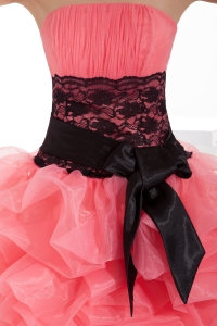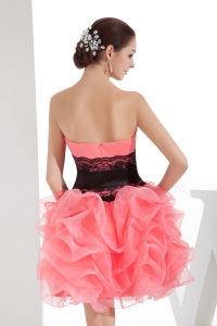 Lace and Pick Up Column Strapless Short Watermelon Prom Dress