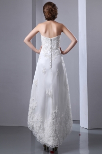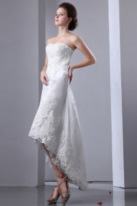 Lace High-low Beach Wedding Dress Strapless Elastic Wove Satin