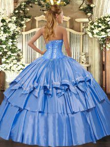 Lilac Sweet 16 Dresses Military Ball and Sweet 16 and Quinceanera with Beading and Ruffled Layers Sweetheart Sleeveless Lace Up