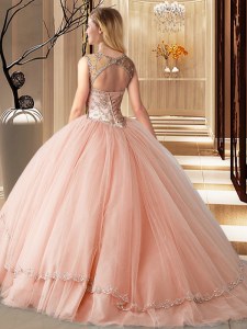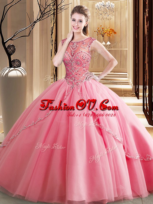 Lovely Scoop Ball Gowns Sleeveless Watermelon Red Quinceanera Dress Brush Train Lace Up