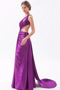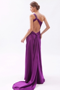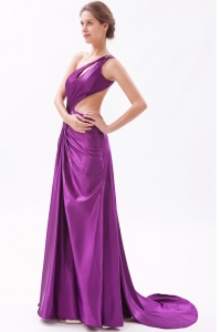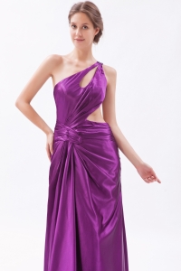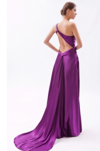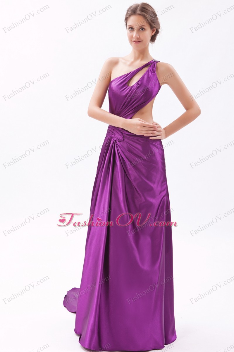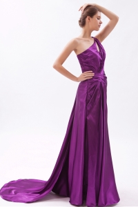 One Shoulder Evening Pageant Dress Purple Brush Train Ruch