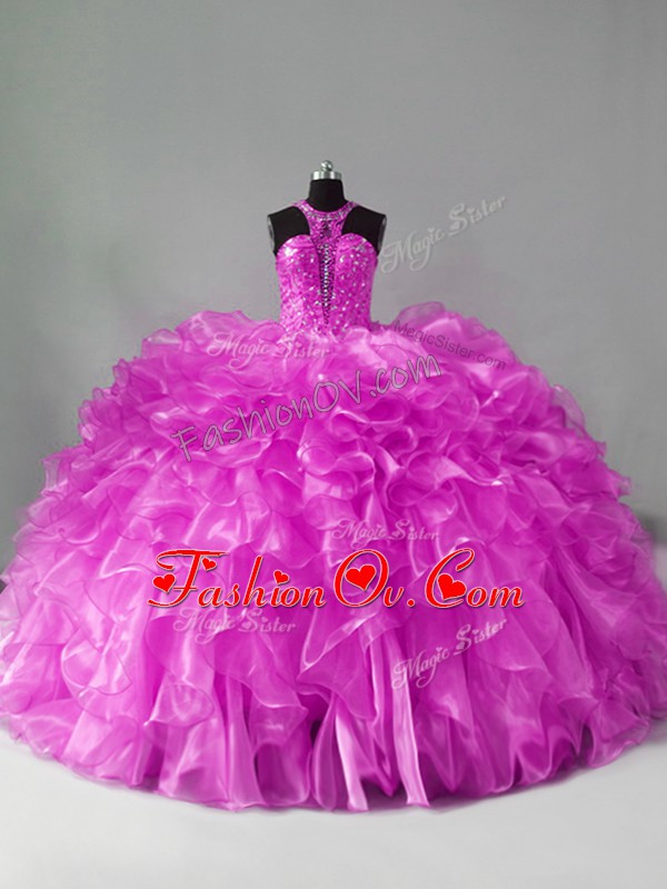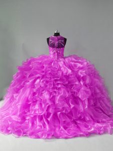 Organza Sleeveless Quinceanera Gown Brush Train and Beading and Ruffles