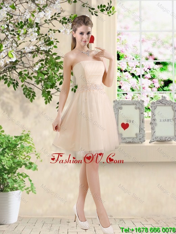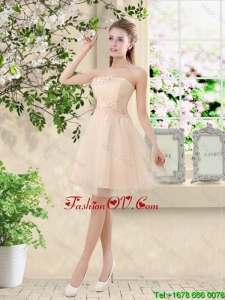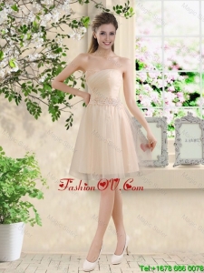 Perfect Short Strapless Champagne prom Dresses with Belt