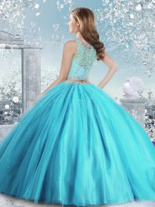 Scoop Sleeveless Sweet 16 Dresses Floor Length Beading and Sequins Lilac Tulle