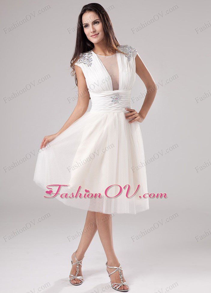Scoop Tea-length Tulle Beading 2013 Prom Dress