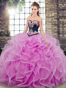 Sexy Sleeveless Sweep Train Embroidery and Ruffles Lace Up Quinceanera Dresses