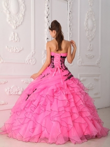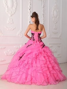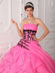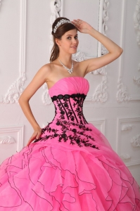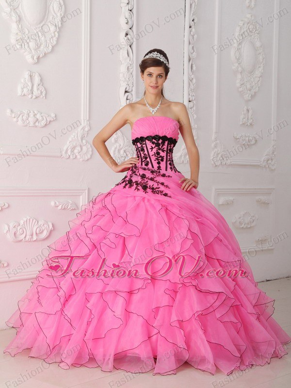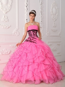 Strapless Appliques Ruffles Rose Pink Quinceanera Dress