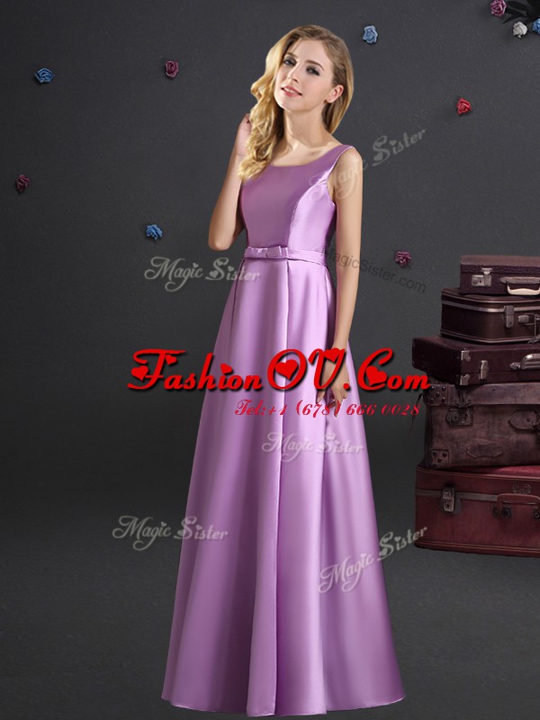 Sweet Lilac Square Neckline Bowknot Bridesmaids Dress Sleeveless Zipper