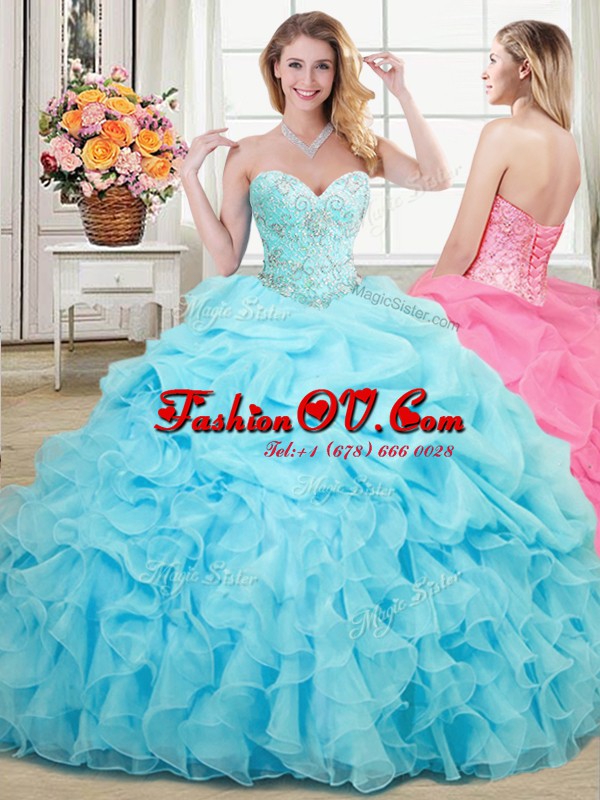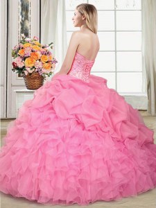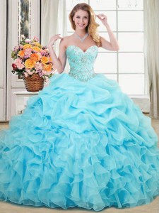 Sweetheart Sleeveless Organza 15 Quinceanera Dress Beading and Ruffles and Pick Ups Lace Up