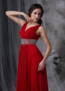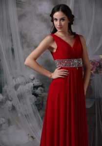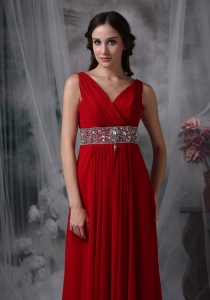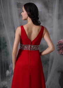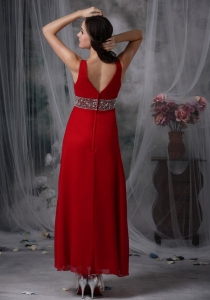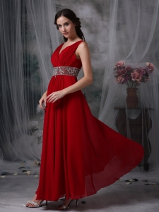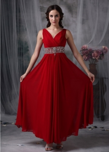 V-neck Ankle-length Beading Red Prom / Evening Dress