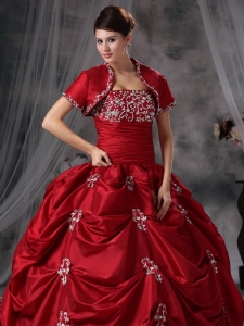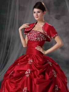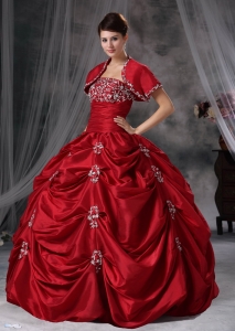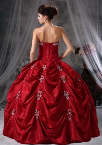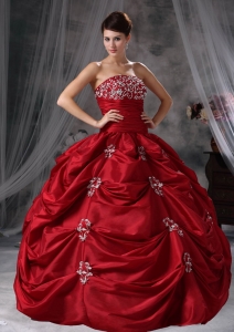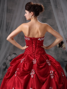 Wine Red Strapless Taffeta Appliques Quinceanera Dress