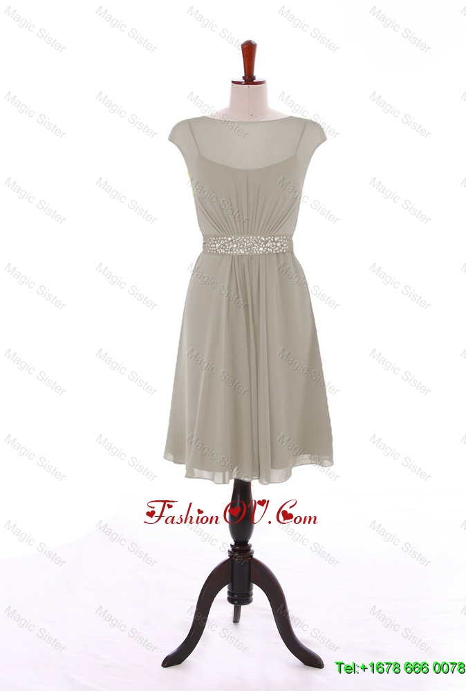 Wonderful Bateau Grey Short Prom Dresses with Beading for 2016