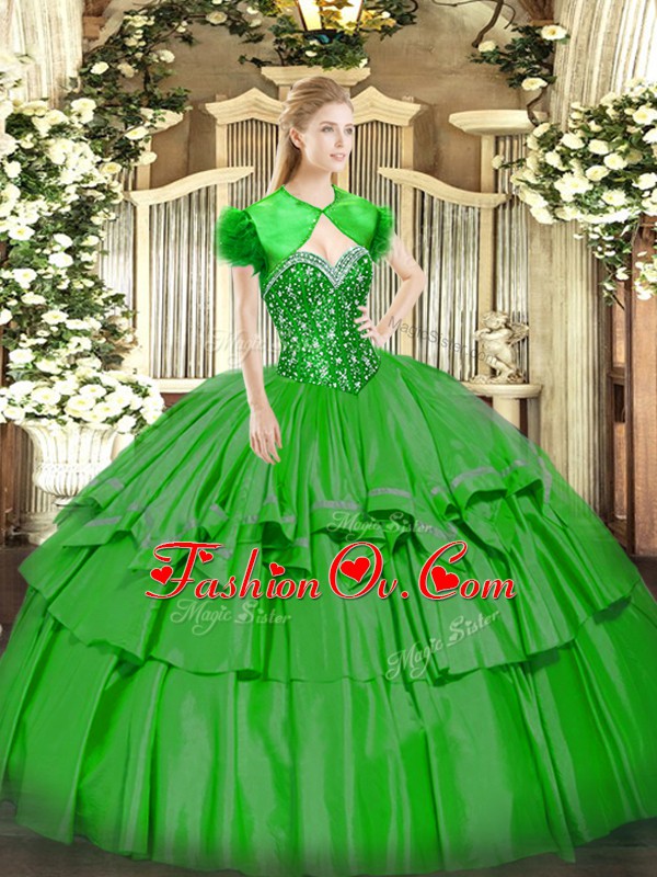 Wonderful Green Organza and Taffeta Lace Up Sweetheart Sleeveless Floor Length Sweet 16 Dresses Beading and Ruffled Layers
