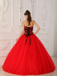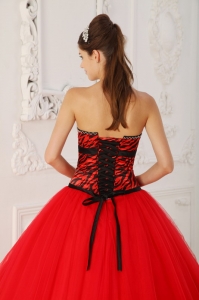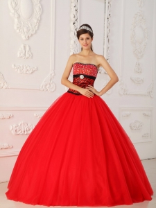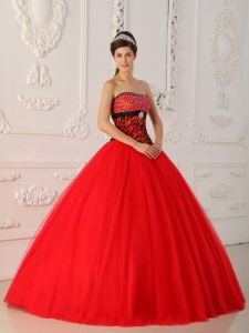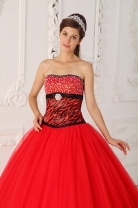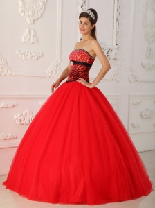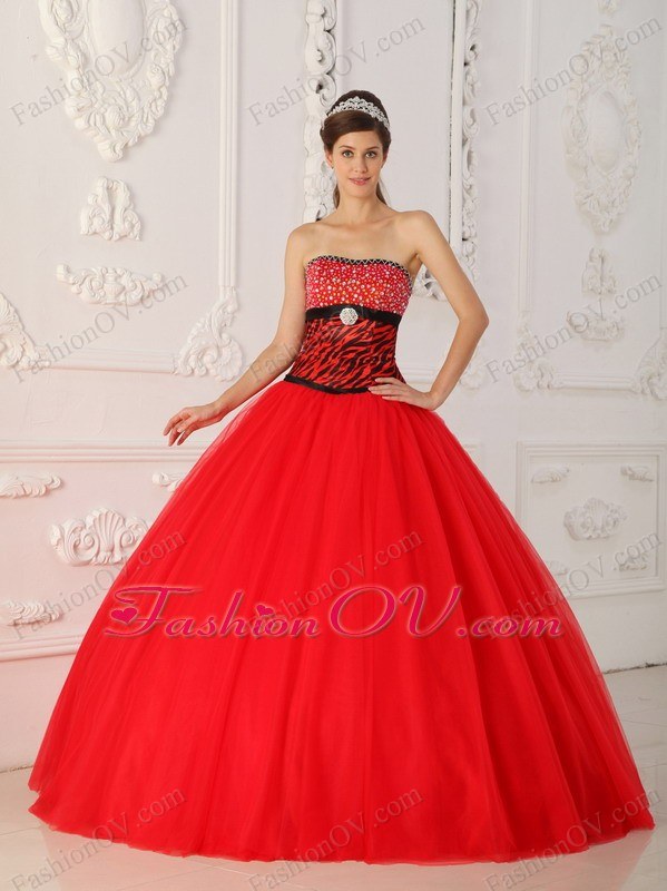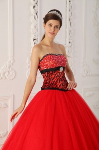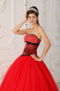Zebra Beading Red Quinceanera Dress Princess Strapless